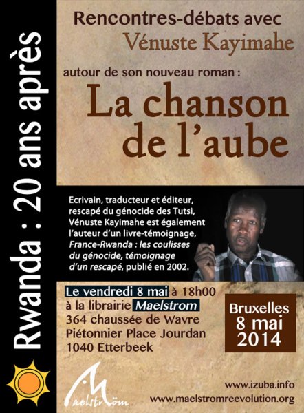 A l’occasion de la sortie de son roman, La chanson de l’aube, - et dans le cadre des 20e commémorations du génocide des Tutsi - Vénuste Kayimahe effectue une série de rencontres et de présentations en Belgique.