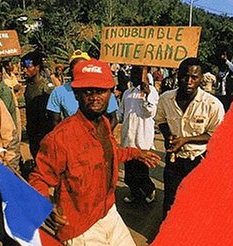 • * « Inoubliable Mitterrand » - Détail de la couverture de La nuit rwandaise, de Jean-Paul Gouteux (www.lanuitrwandaise.org). Les Interahamwe - miliciens fer de lance du génocide - brandissaient pour accueillir en sauveurs les troupes