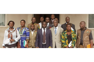 Image d’illustration : Dr N’Gouan Patrick, Coordonnateur National de la CSCI (en costume bleu) entouré de quelques membres du Bureau de Coordination et de l’équipe technique de la MOE (www.societecivile-csci.org)